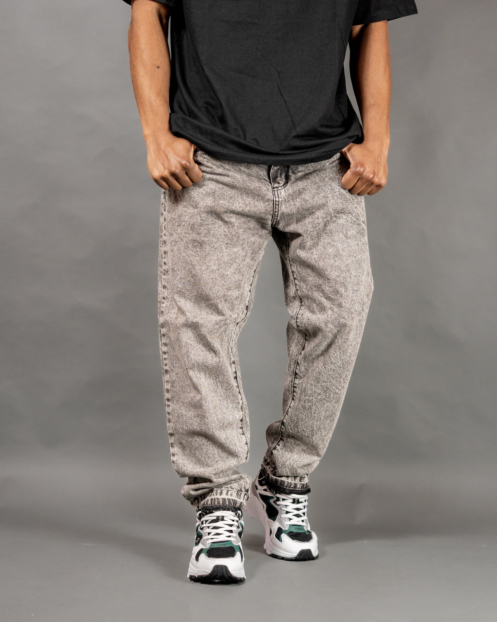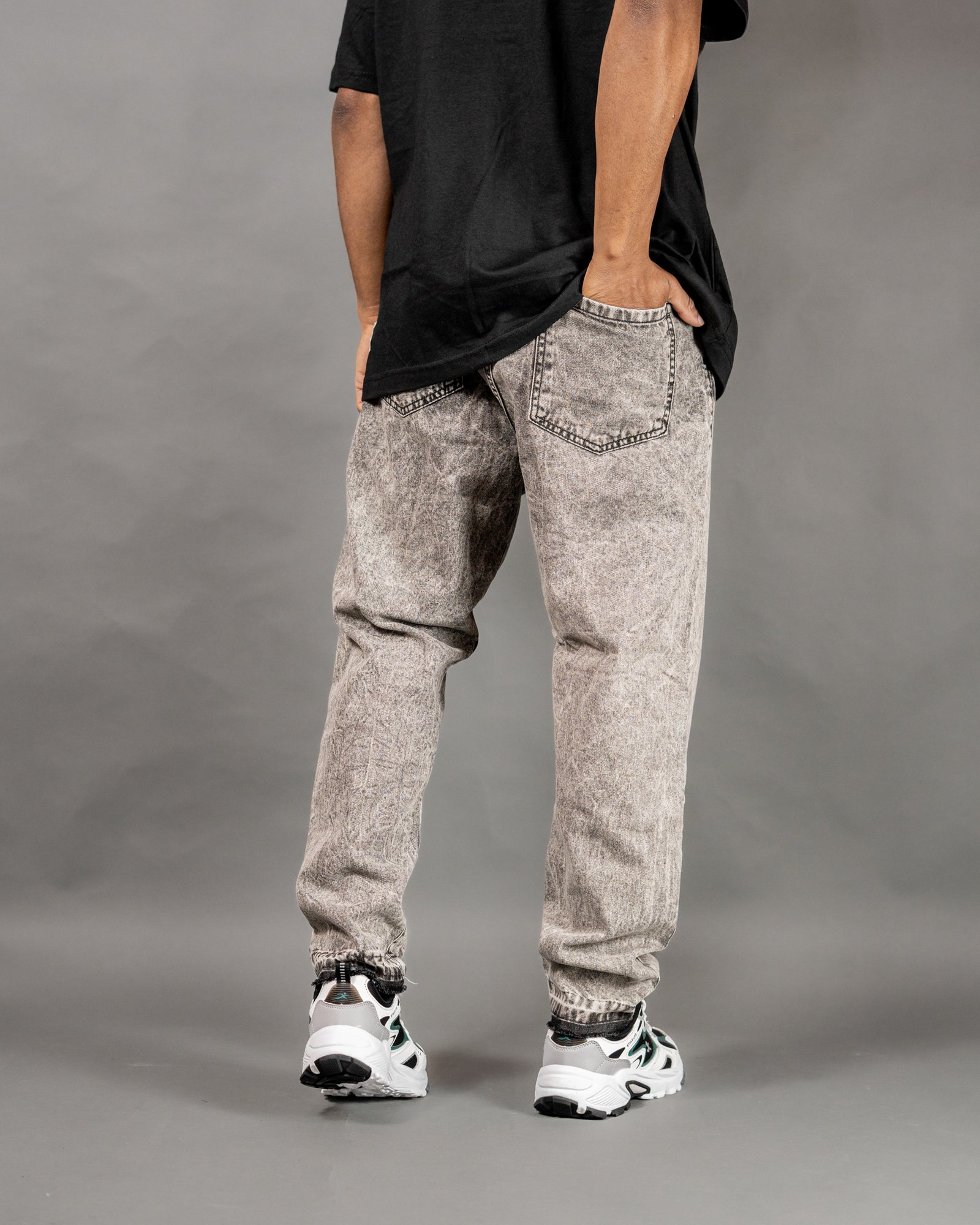 PANTALON CORTE MOM JEANS GRIS NEVADO CON DETALLE DE RUEDO DESATADO
